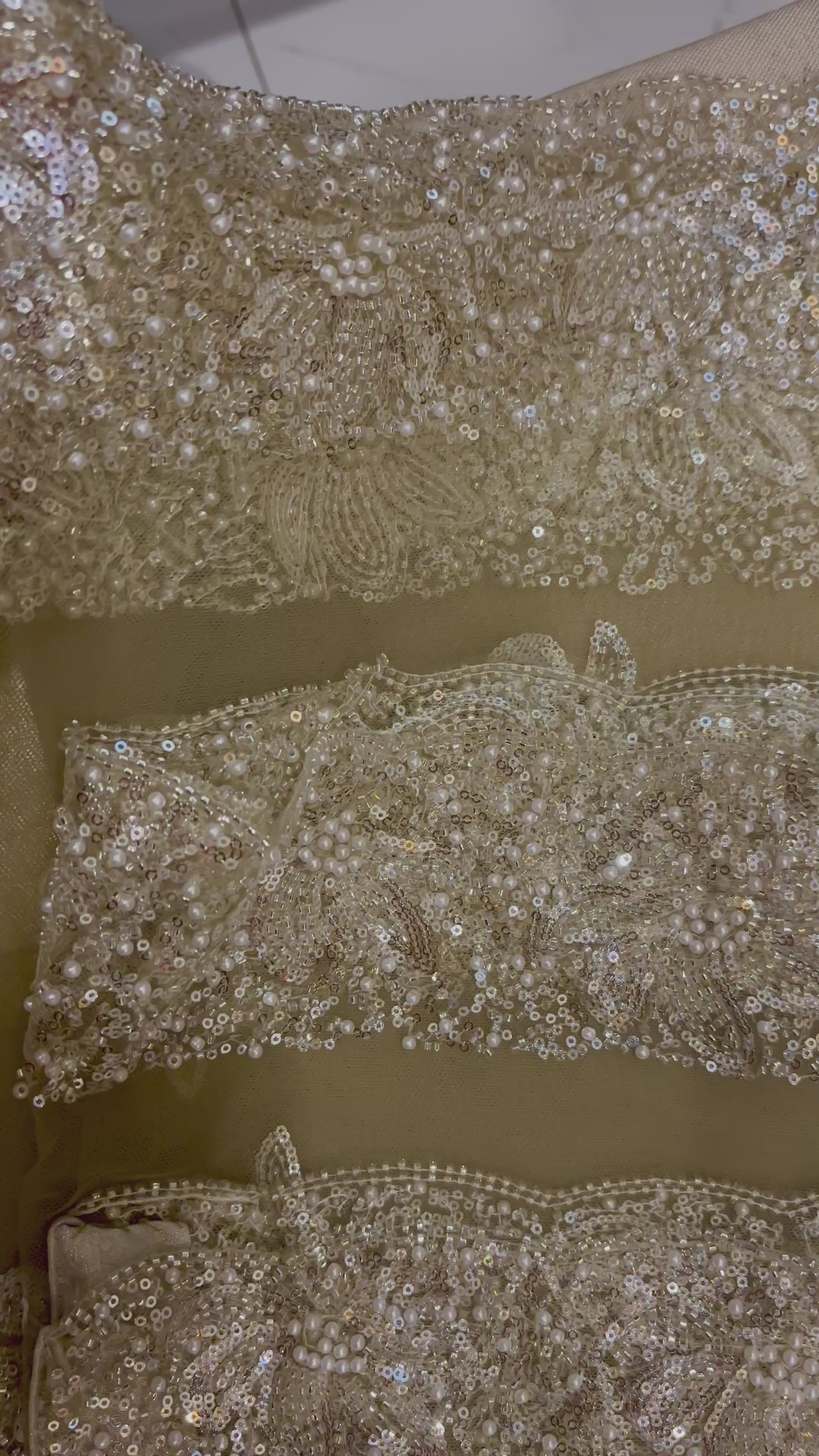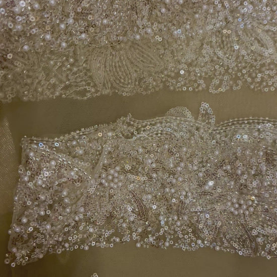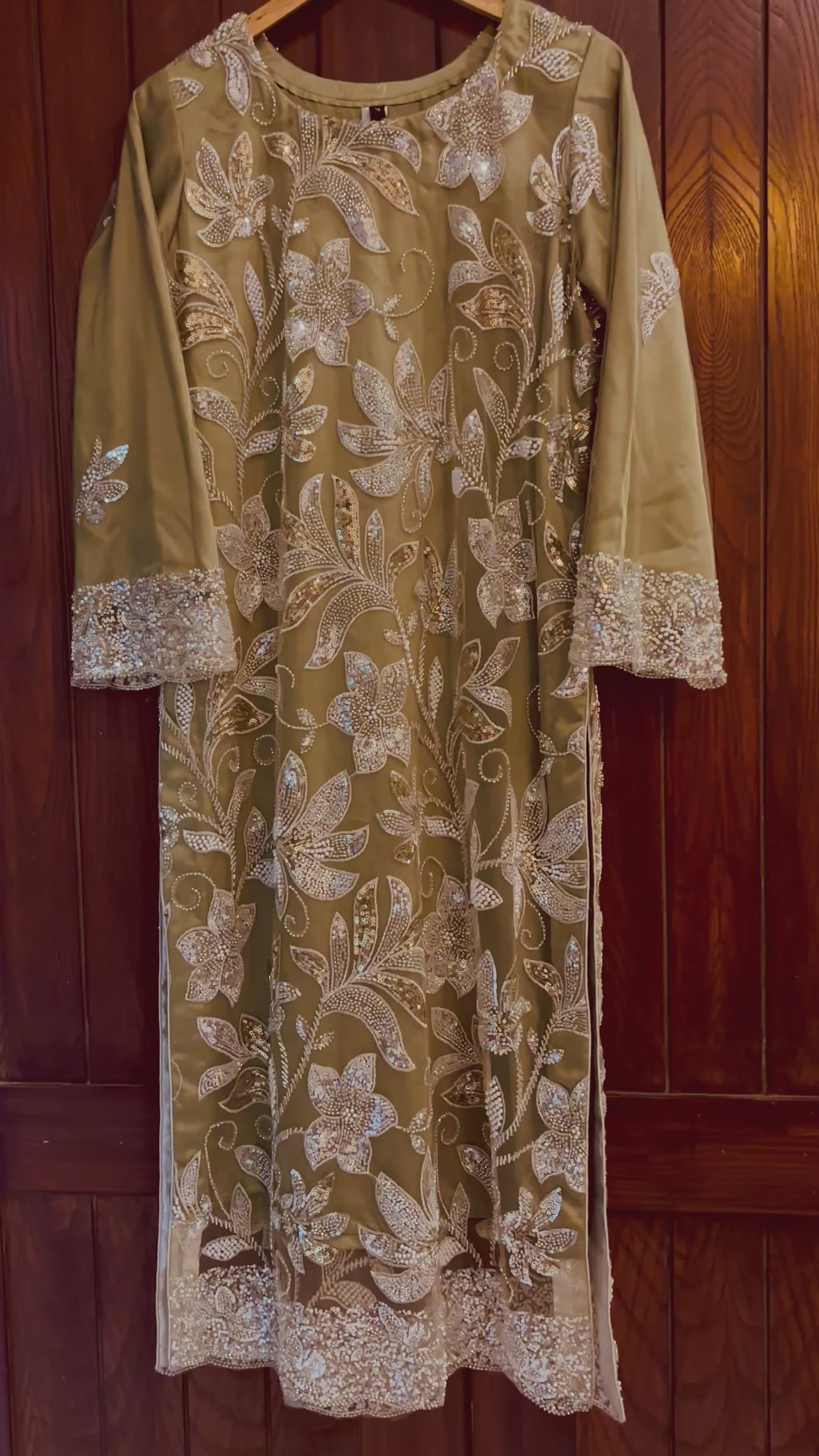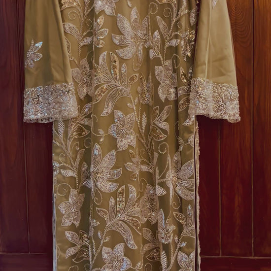 A timeless formal shalwar kameez crafted in delicate net, adorned with pearl motifs and shimmering sequence embroidery. Elegant, graceful, and made to shine on special occasions.