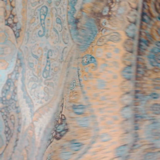 Immerse yourself in timeless luxury with our Kani Silk Tabrizi Shawl, exquisitely woven in serene ocean blue and sand hues. Measuring 42 inches wide and 82 inches long, this masterpiece offers the perfect drape, comfort, and premium coverage.