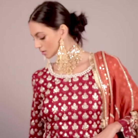 Immerse yourself in the refined elegance of pearly beauty, where traditional craftsmanship meets contemporary sophistication. This exquisite ensemble features a majestic necklace, elegant earrings, and a captivating bracelet, all adorned with timeless kundan work, delicate pearl motifs, and lustrous pearl beads. Elevate your bridal style with the grace and poise reminiscent of Alia Bhatt on her wedding day. Each piece is thoughtfully designed to radiate luxury and charm, ensuring you shine like a radiant princess.Crafted with gold plating over premium brass for enduring quality.